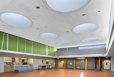 Services provided for the Early Childhood Gathering Room at the Boulder Jewish Community Center. The use of all three acoustically absorptive materials allows for comfortable speaking conditions for large group gatherings.